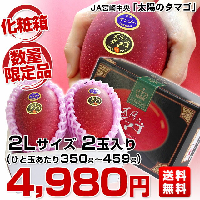 商品名:マンゴー(太陽のたまご)2Lサイズ 産地:宮崎県 内容量:(350gから459g)×2玉 発送時期:5月中旬から順次発送します。