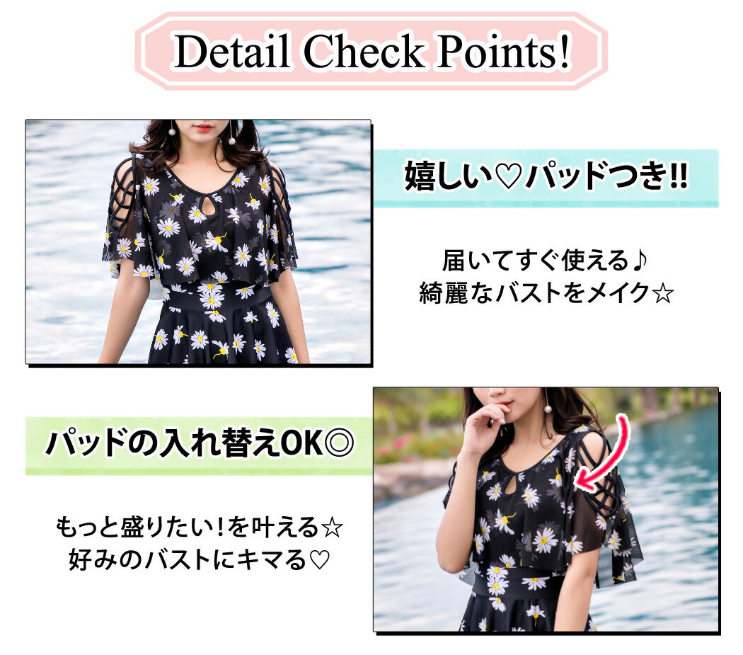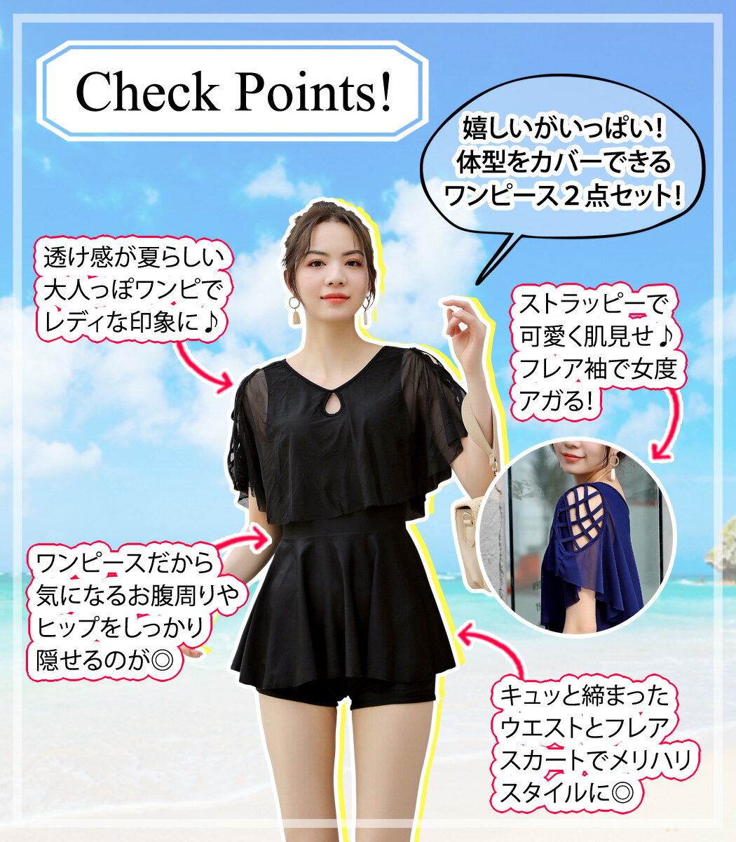水着 体型カバー水着 レディース ワンピース水着 ショートパンツ セパレート 2点セット バックフリル フレア 可愛い シンプル ぽっちゃり 小胸 バスト 盛れる 胸パッド 無地 花柄 ブラック リゾート セクシー フレアスカート 肩あき 20代 30代 40代 Fカップ Eカップ 黒 白